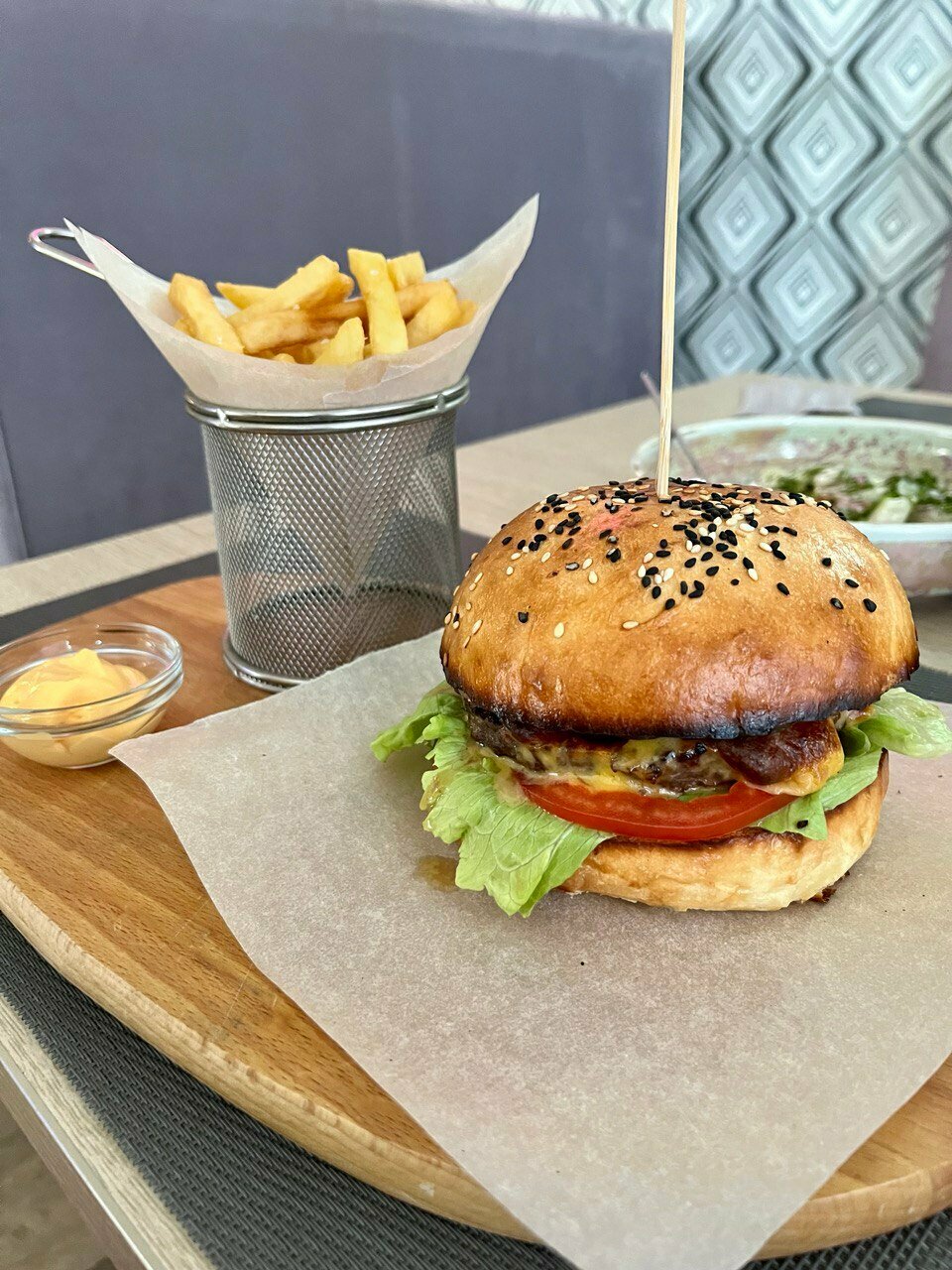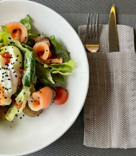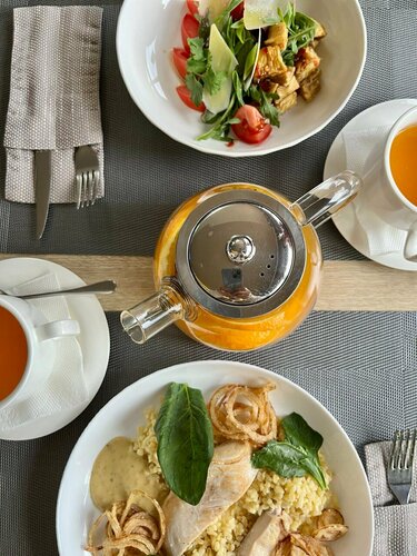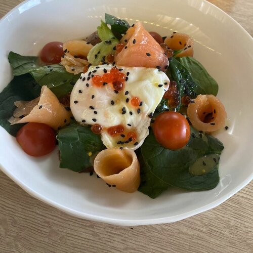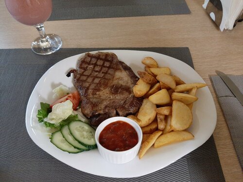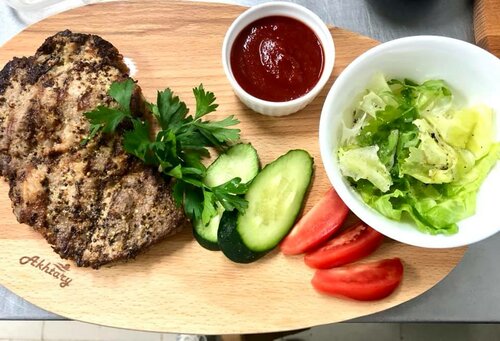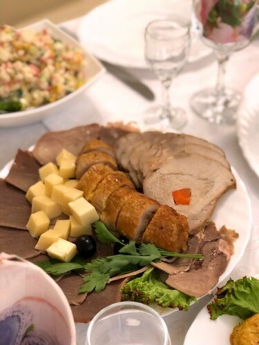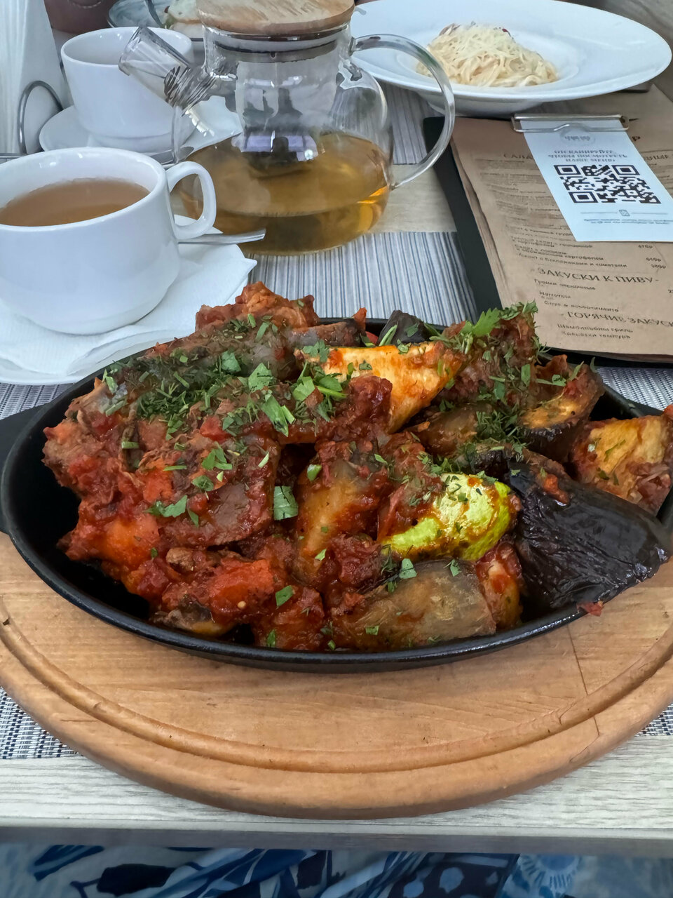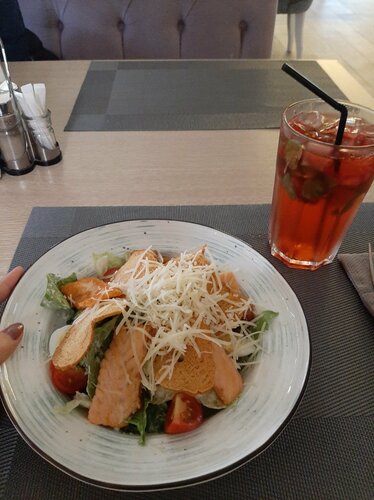 В кафе заехали по дороге домой. Заказывали традиционные блюда, горячее и салаты. Вся еда была вкусная.