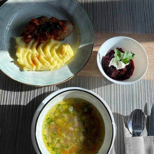 Шикарно !!!! Были проездом из Махачкалы в Москву 01.11.2025, заехали пообедать - супчик из баранины по-калмыкски - мне в Махачкале шашлыка из баранины в порции столько не давали как было в супчике ( МАХАН ) , Супруга заказала Солянку сборную - была восхищении 👍